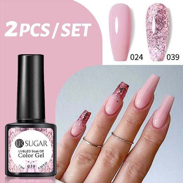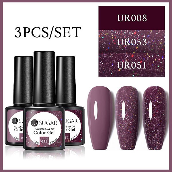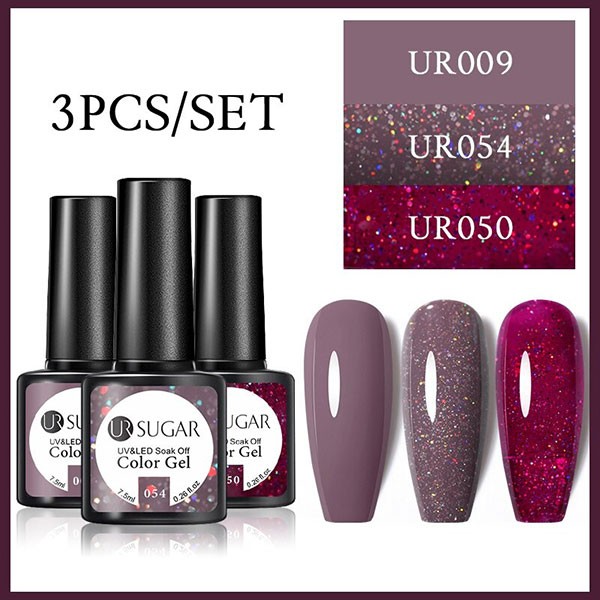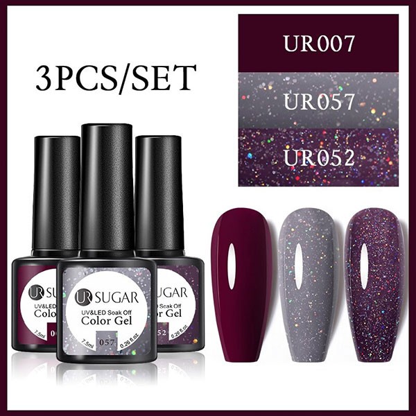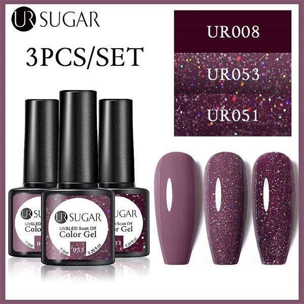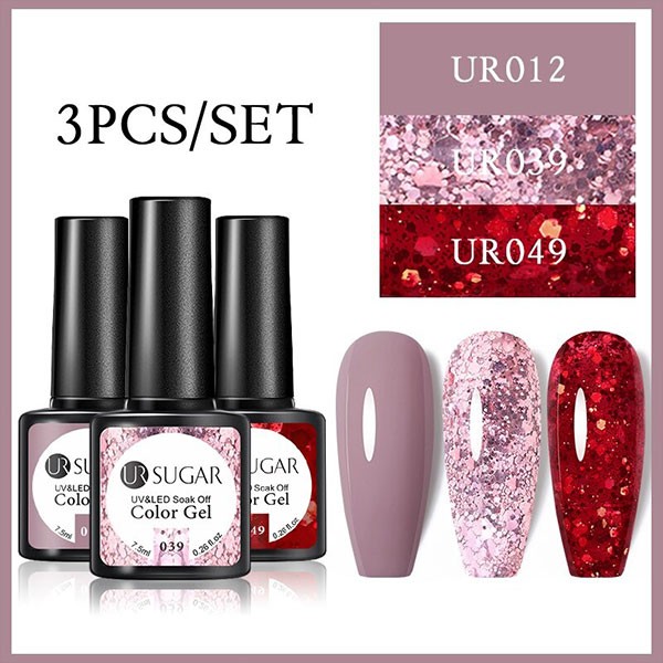 2/3 Bottles 7.5ml UR SUGAR Glitter Solid Color Soak OffGel Nail Polish Set