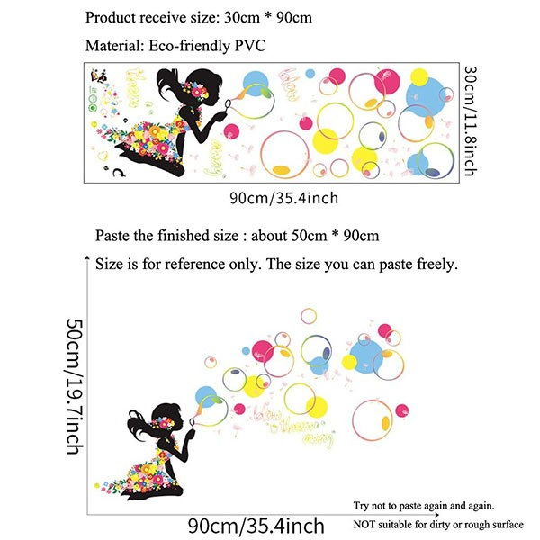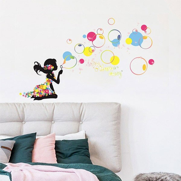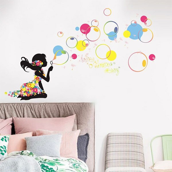 Colorful Girl Blowing Bubbles Wall Sticker