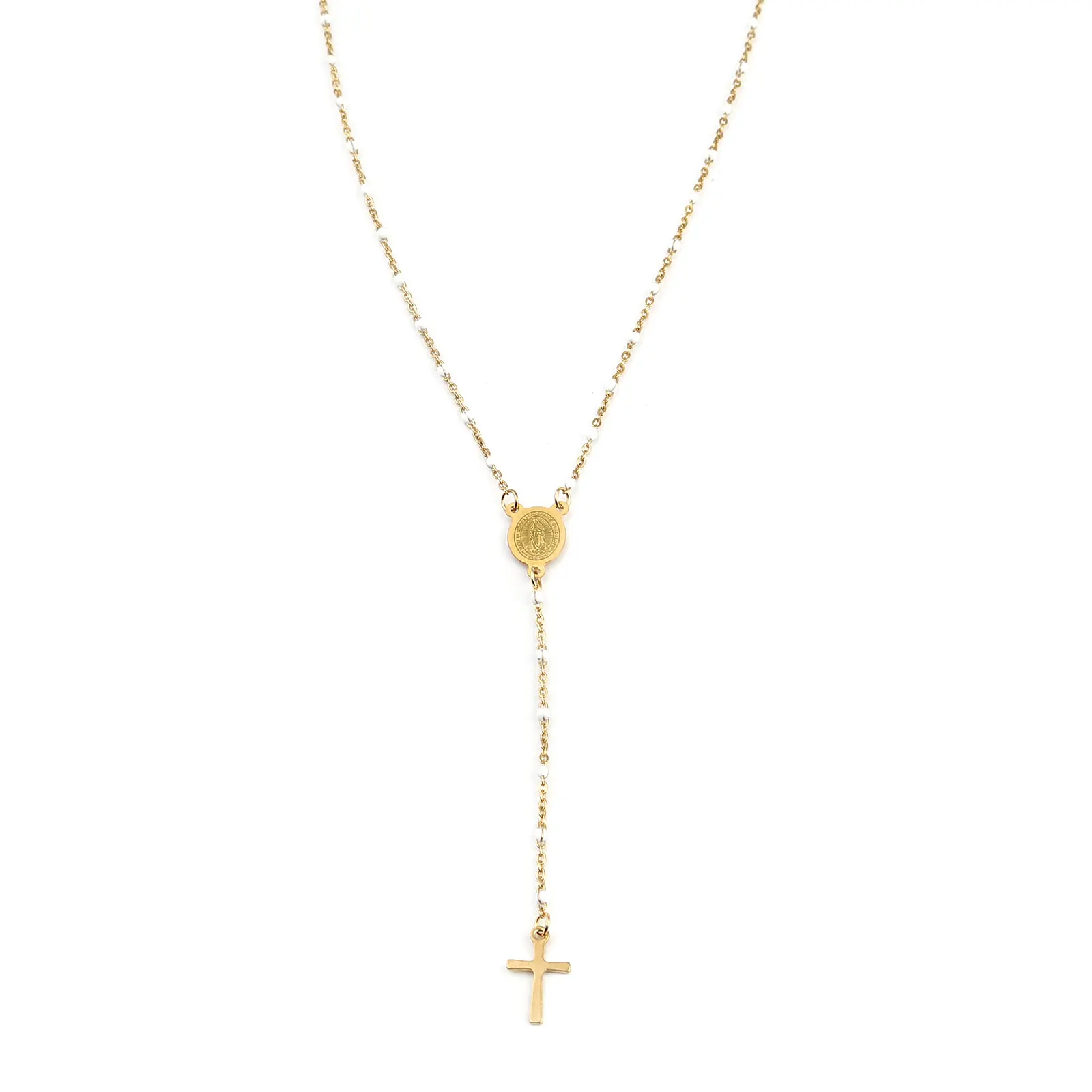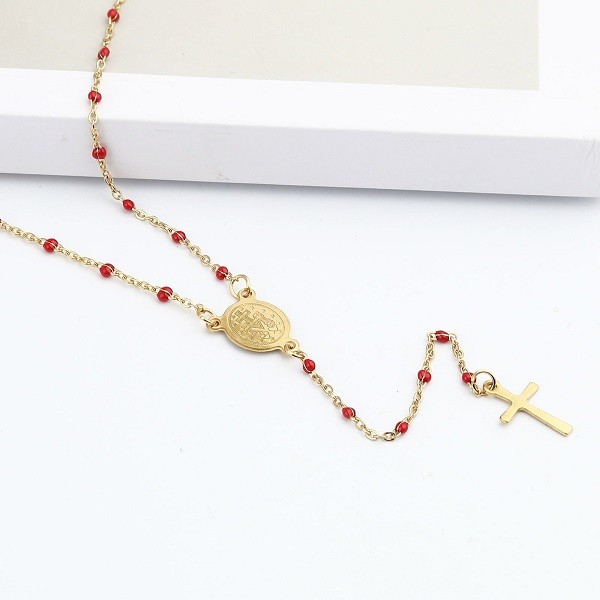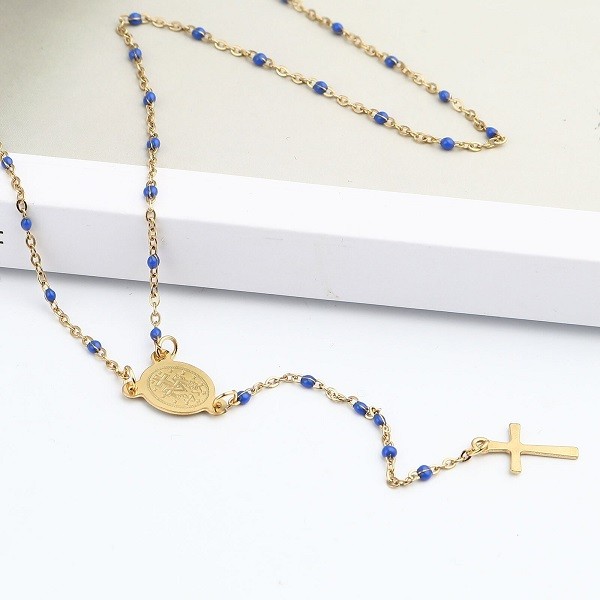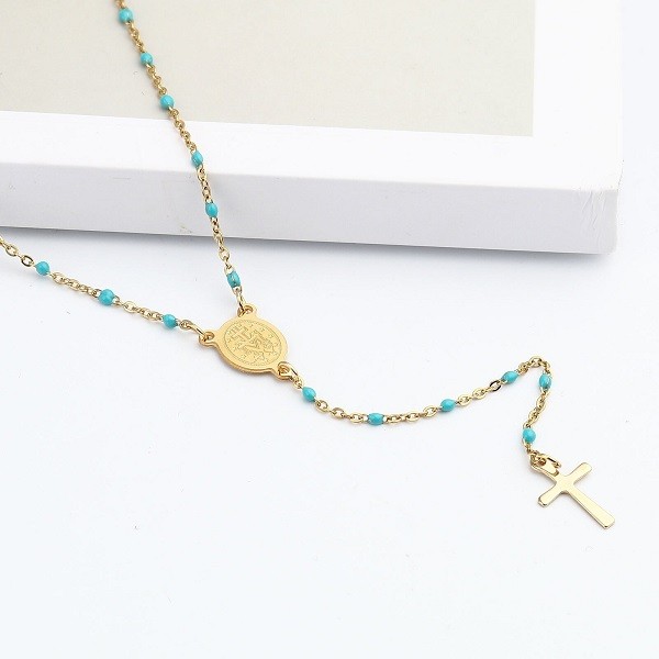 Stainless Steel Cross Virgin Mary Enamel Necklace For Women Charm Jewelry Gifts