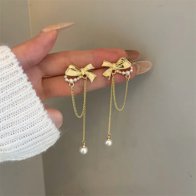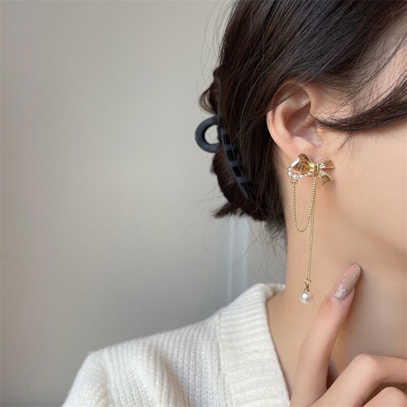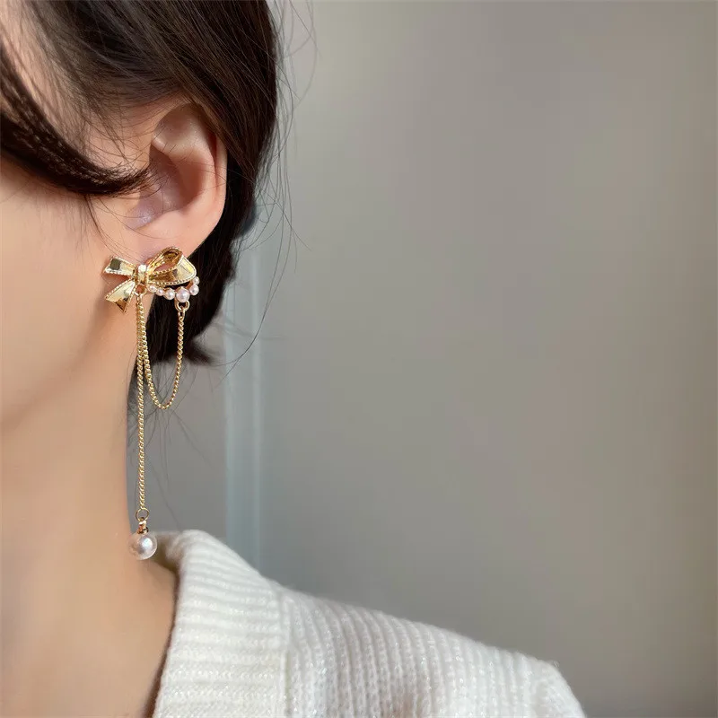 Adolph Pearl Bow Earrings 2021 New Jewelry Punk Korean Fashion