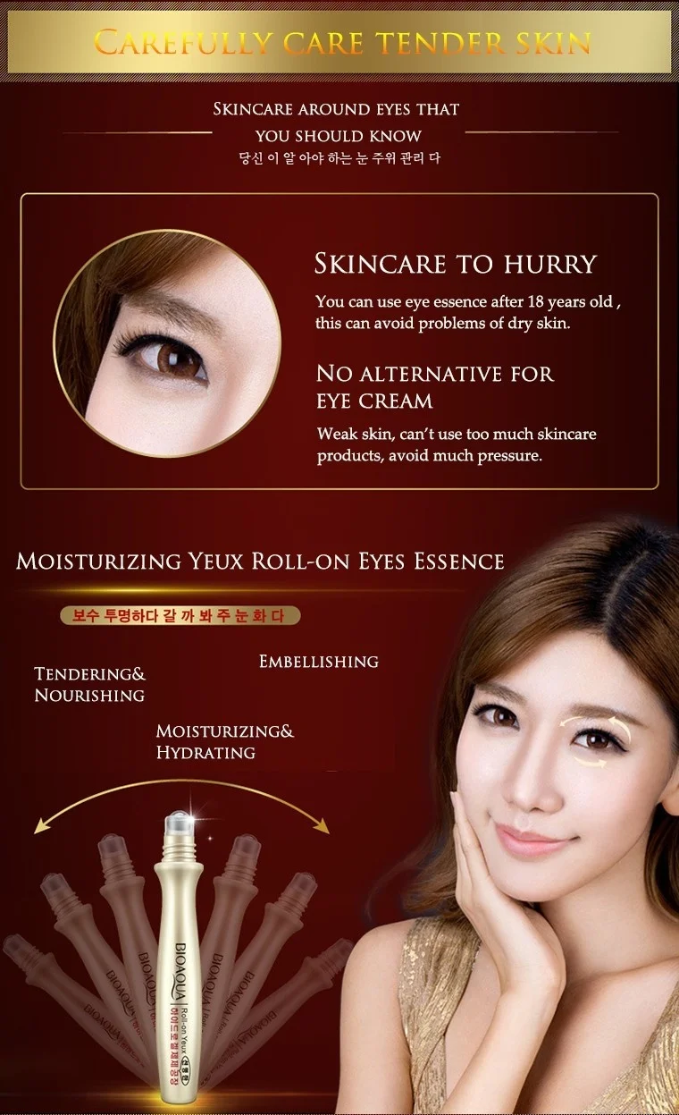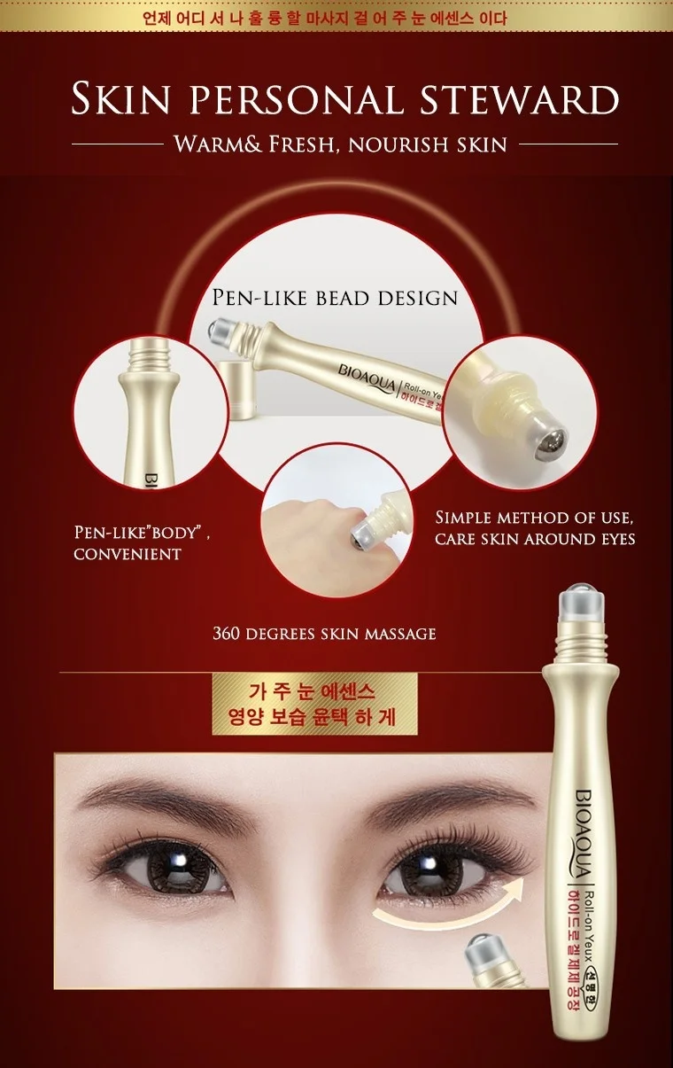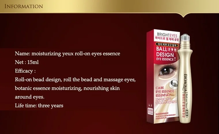 Roll-on bead design, roll the bead and massage eyes, botanic essence moisturizing, nourishing skin around eyes.