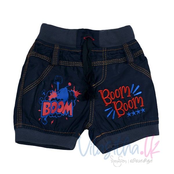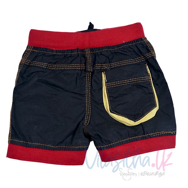 Denim short with color band.