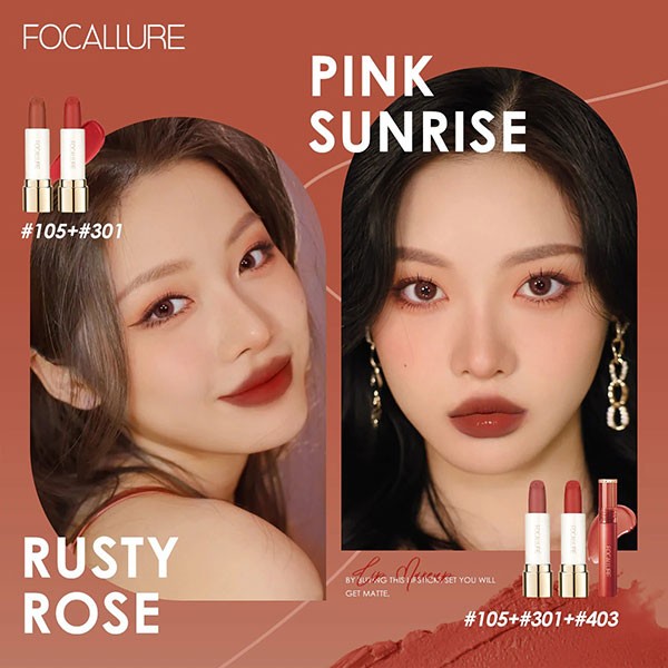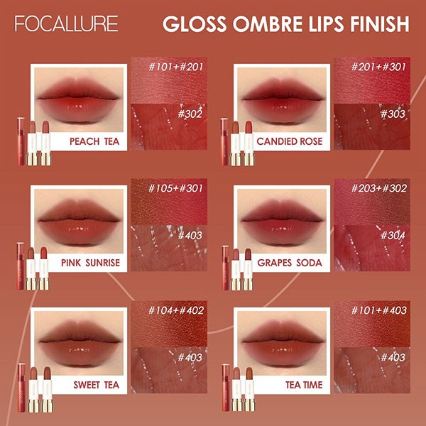 FOCALLURE Matte&Gloss Lipstick Soft Smooth Ombre Lips High Pigment Long-Lasting Lip Tint Overlay Use Lip Makeup