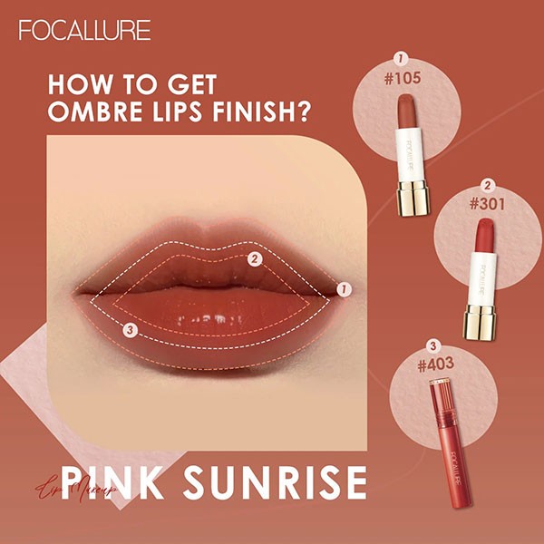 1. If you want to get a matte ombre lips finish, first use the light lipstick in the combination as a base, then put the darker lipstick on the inner lips, and then use your fingers to smudge the lines evenly;