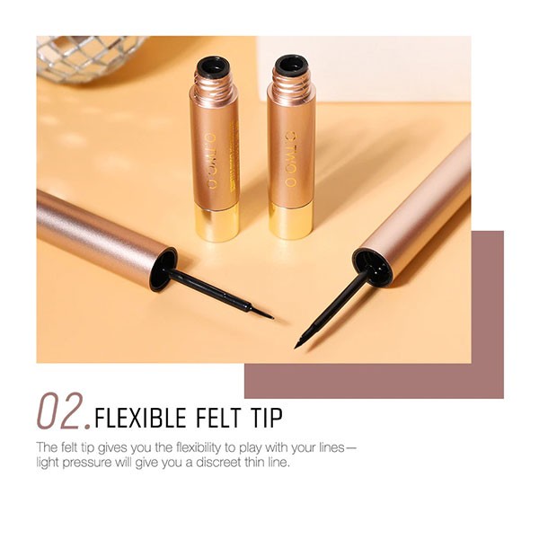 the felt tip gives you the flexibility to play with your lines—light pressure will give you a discreet thin line, while applying with more pressure will give you a thicker, bolder look.