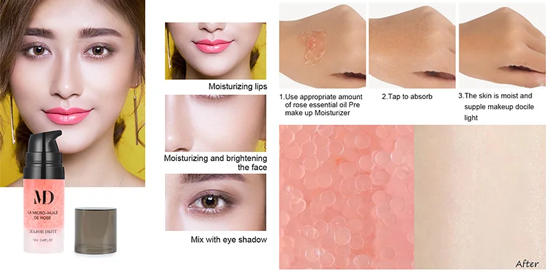 Features Volume: 12ml Quality:Natural Mineral, Organic Ingredients, Alcohol-free, No sensitive, Safe-tested Suitable: All Skin Types Unique transparent silicone gel base Silky Texture Natural Matte Finish Smoothes skin Refines skin Reduces appearance of pores Controls oil Prolong Makeup Non-acnegenic Description Unique transparent silicone gel base,present silky and natural skin via light reflection. Fresh gel texture let your skin breathe freely , no burden at all. Contain oil-control powder which can absorb the excess of sebum and prepare the skin to help makeup stay for a long time. Usage Fetch an appropriate amount of the primer with finger,smear with circle on the zone that excrete too much oil. Ingredients: Cyclomethicone, Dimethicone/ Divinyldimethicone/ Silsequioxane Crosspolymer, Laureth-12, Isododecane, Nylon-12, Squalane, PEG-10 Dimethicone, Polymethyl Silsesquioxane.