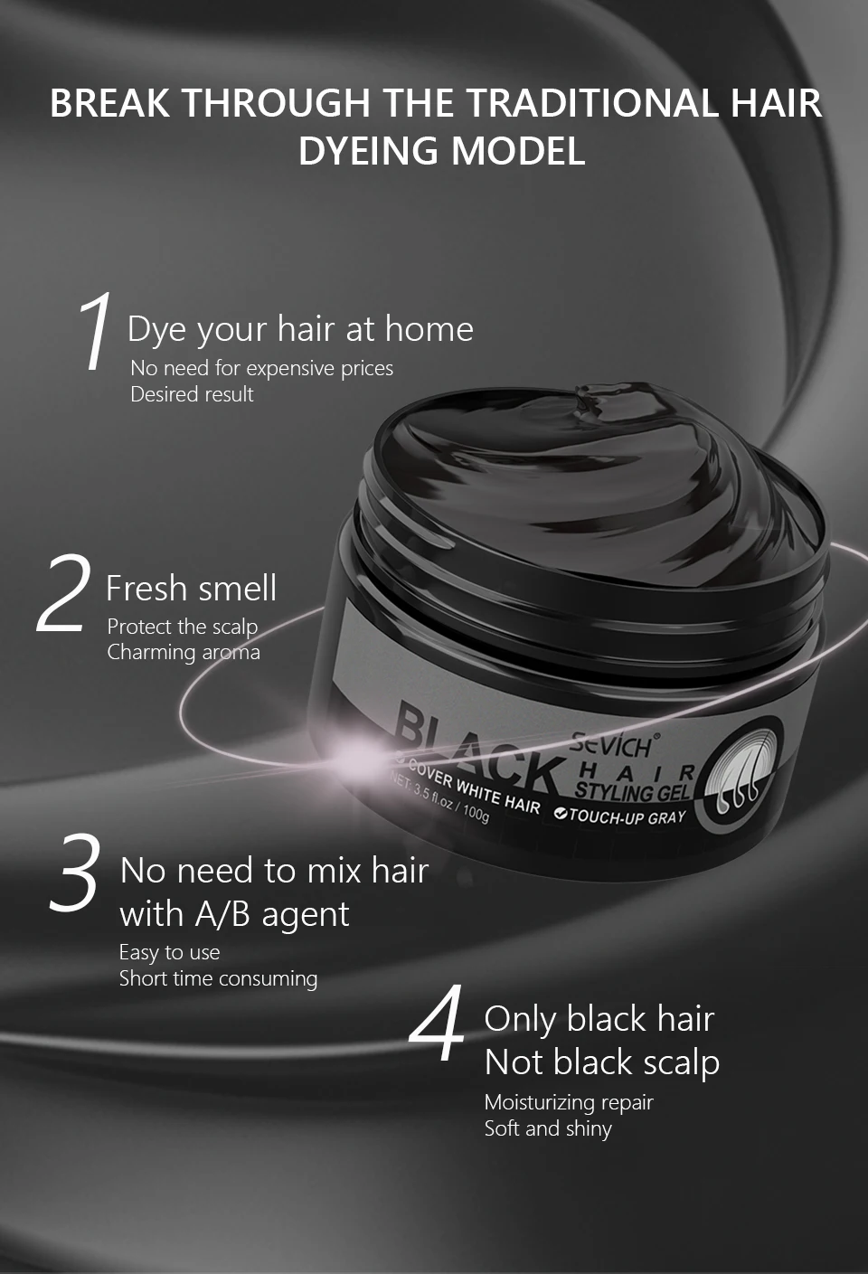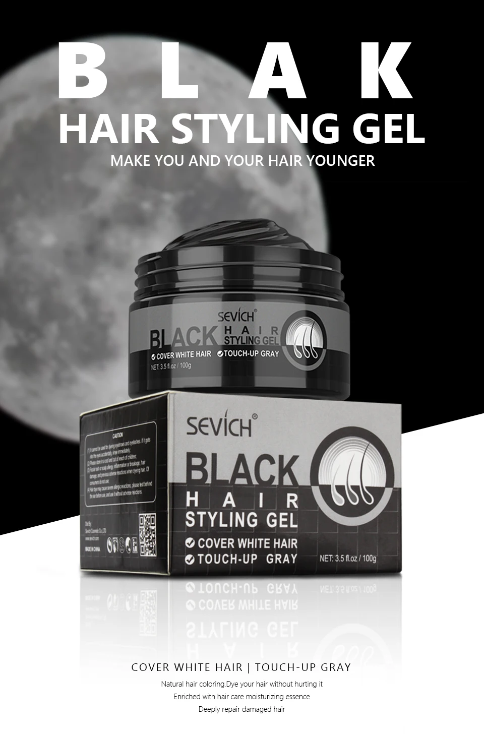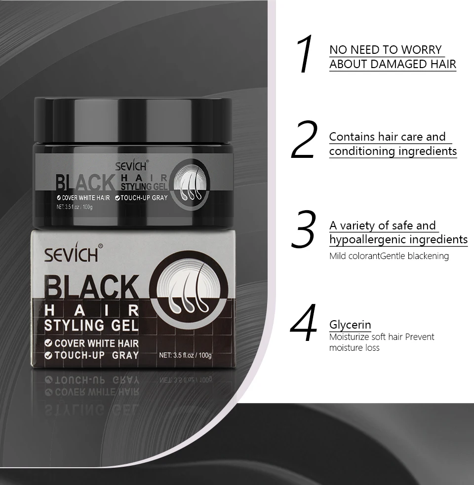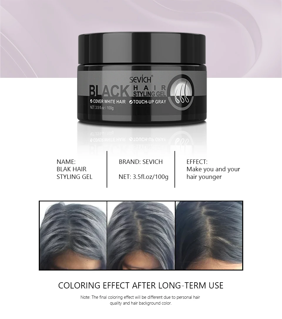 Sevich 100g Hair Wax Styling Pomade Black Color Dye Hair Clay Natural Hair Strong Gel Long-lasting Dyeing for Men Women