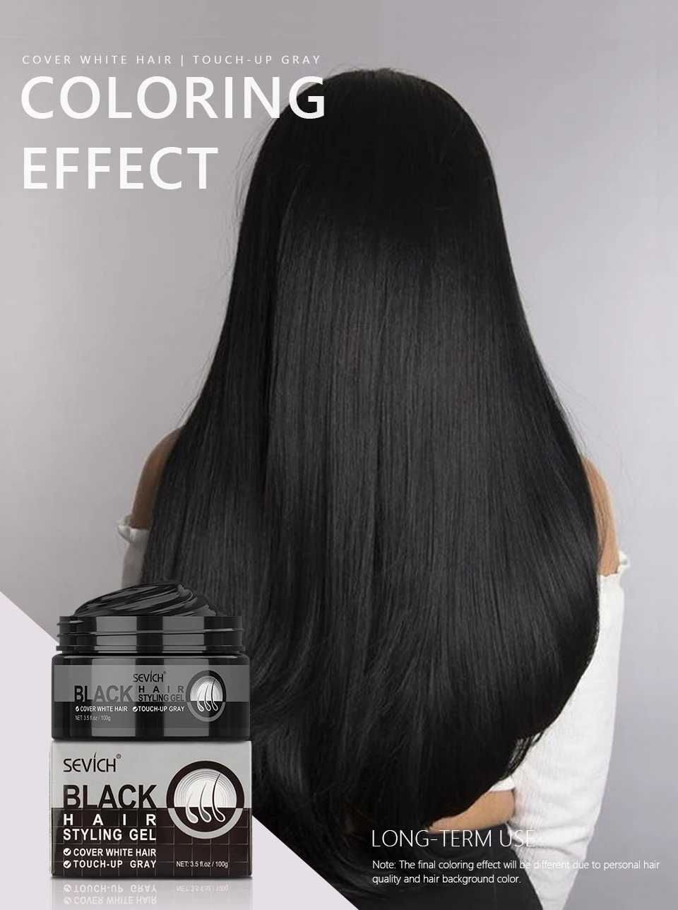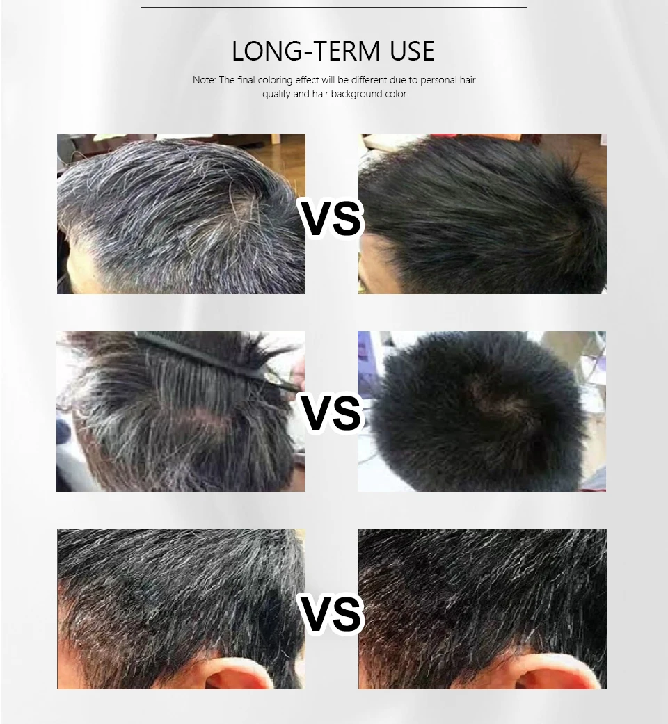 The white hair gradually turns from white to gray, and finally the hair appears black and shiny.