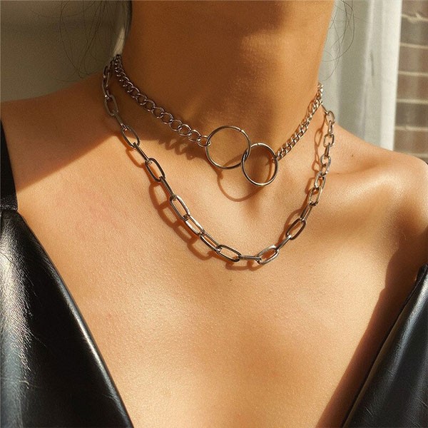 Punk Miami Cuban Chokers Collar Hip Hop Big Chunky Silver Color Stainless Steel Thick Chain Circle Necklace Women Neck Jewelry