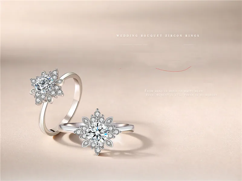 CC Wedding Rings For Women 0.8ct 6mm Cubic Zirconia Holding Flowers Fine Jewelry Romantic Bridal Engagement Accessories CC1630